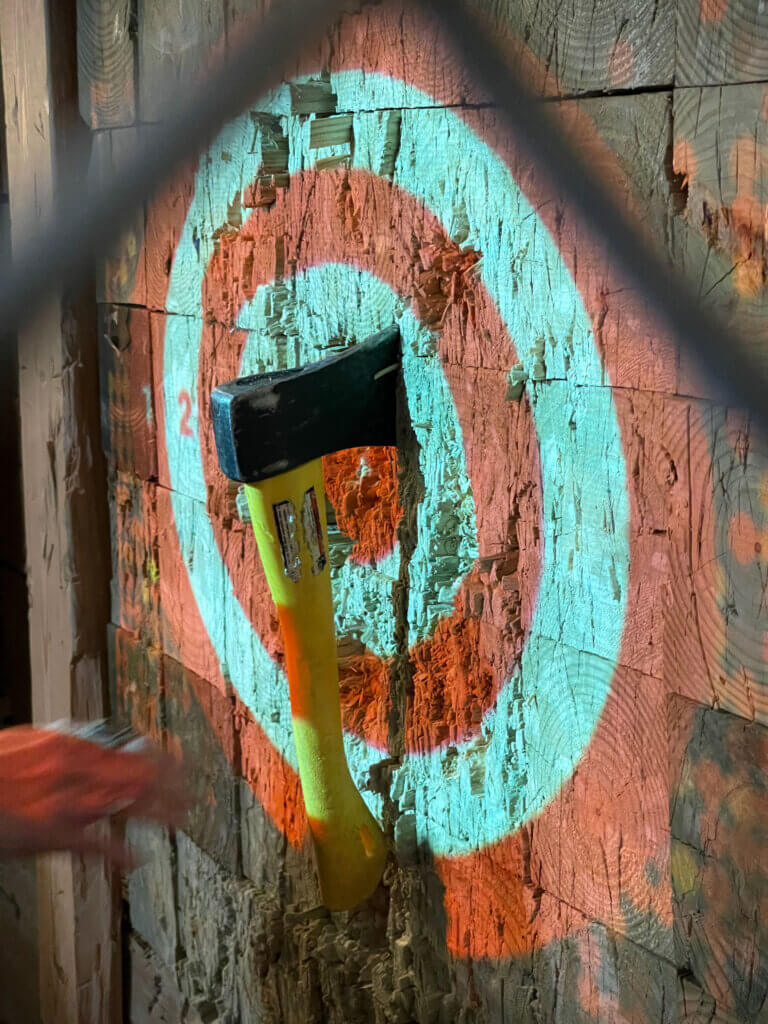Axe throwing at LVGP is more than just hitting a target. It’s a fully interactive game experience. Each lane features digitally projected targets that transform with the tap of a button, giving you access to a lineup of games designed to keep every round fresh. Whether you’re lining up a perfect shot in Tic Tac Toe, battling it out in Connect Four, or taking aim in Zombie Hunt, there’s always a new way to play.