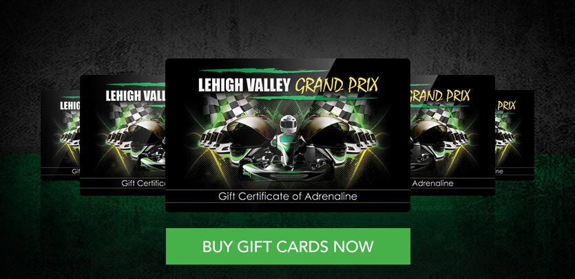 Give a gift they’ll never forget! ALL GIFT CARDS PURCHASED ONLINE WILL BE SENT VIA EMAIL. In the event you do not receive your emailed gift card, please email ryan@lehighvalleygrandprix.com. Gift card values cannot be split amongst separate gift cards or redeemed for cash value.